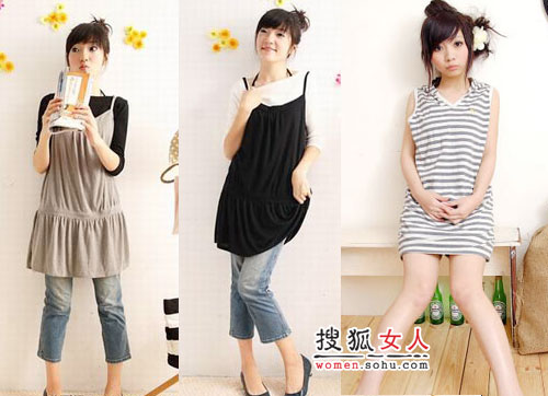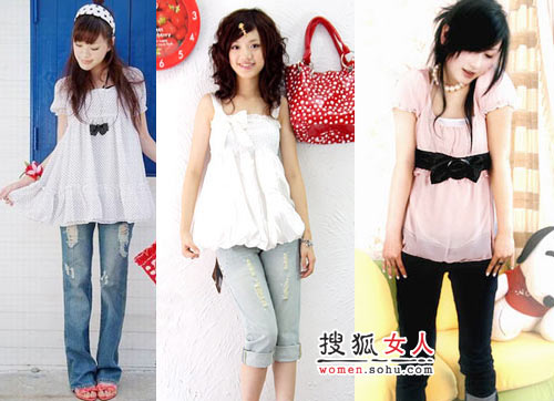 胸部輪廓:盡管娃娃裝很寬松,但(dàn)若胸部凸出,胸部以下寬松,就會(huì)有(yǒu)曲線感,否則看來會(huì)臃腫。