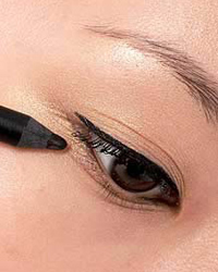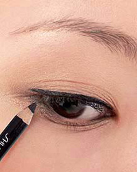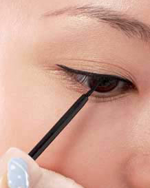 6、檢查眼線,用(yòng)眼線筆(bǐ)補畫欠缺的(de)地(dì)方,使眼線描畫得更加圓潤