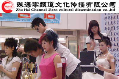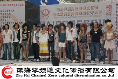 由珠海(hǎi)市香洲區人(rén)力資源中心和(hé)珠海(hǎi)市香洲區美(měi)容美(měi)發協會(huì)及多個(gè)來自港澳與國外之企業(yè)共同合作舉行(xíng)的(de)“2007珠海(hǎi)香洲美(měi)發美(měi)容節暨第五屆美(měi)發美(měi)容技能(néng)公開(kāi)大(dà)賽”27、28日在吉大(dà)海(hǎi)天城舉行(xíng),零頻道發型模特在大(dà)賽中有(yǒu)出色表現。下爲部分(fēn)精彩現場(chǎng)圖片: