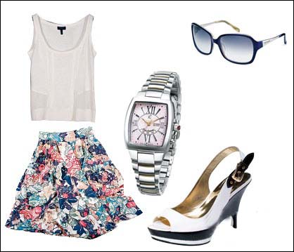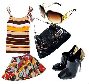 黃(huáng)白棕條紋T恤搭配一條大(dà)地(dì)色的(de)花朵超短裙,暗(àn)調的(de)下半身并不會(huì)搶了上(shàng)半身的(de)風頭,有(yǒu)主有(yǒu)次才不至于讓人(rén)眼花缭亂。