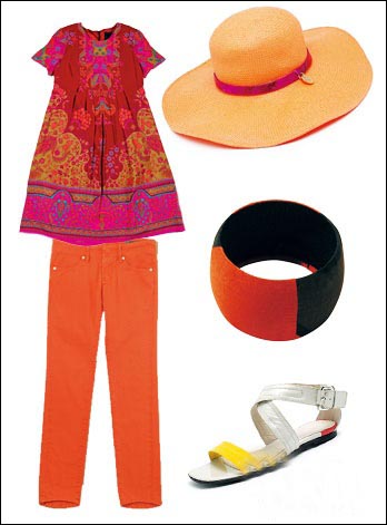 帶有(yǒu)民(mín)族特點的(de)印花上(shàng)衣與同色系長褲搭配,具有(yǒu)濃郁的(de)異域風情,寬檐遮陽帽和(hé)編織手袋強調這一身的(de)度假感。
