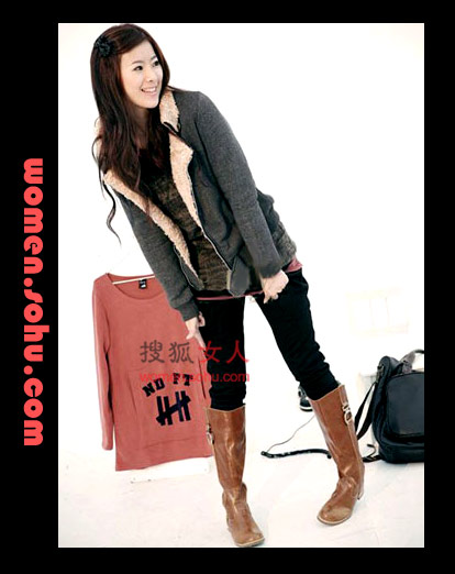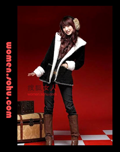 時尚點評:黑(hēi)白配是永遠都(dōu)不會(huì)落伍的(de)搭配,短的(de)黑(hēi)色外套配上(shàng)長的(de)白毛翻邊,是最時尚的(de)混搭。下面是黑(hēi)色緊身褲,就更突出黑(hēi)白的(de)層次感。