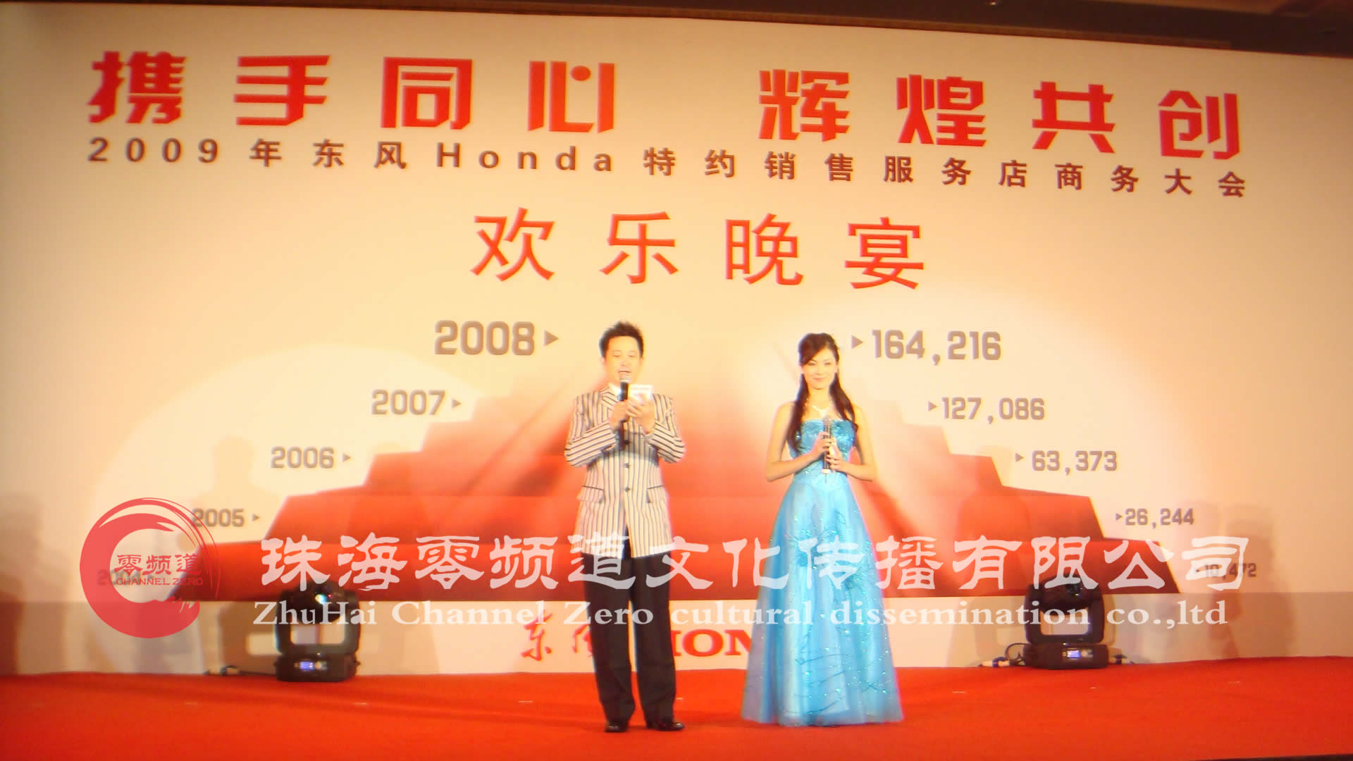 2009年東風Honda特約銷售服務店(diàn)商務大(dà)會(huì)聯歡晚會(huì)12月(yuè)28日晚在海(hǎi)泉灣凱旋廳舉行(xíng),來自全國各地(dì)的(de)經銷商聚集一堂,東風Honda在經濟嚴冬的(de)2008年銷售卻能(néng)保持一直名列前茅,東風Honda總經理(lǐ)倉石誠司到(dào)會(huì)祝賀及緻詞,籲一起攜手同心,共創輝煌。珠海(hǎi)零頻道爲本次晚會(huì)提供了全程演出策劃與執行(xíng),優質高(gāo)效的(de)服務,精彩的(de)演出表演得到(dào)了客戶的(de)誠心贊譽。